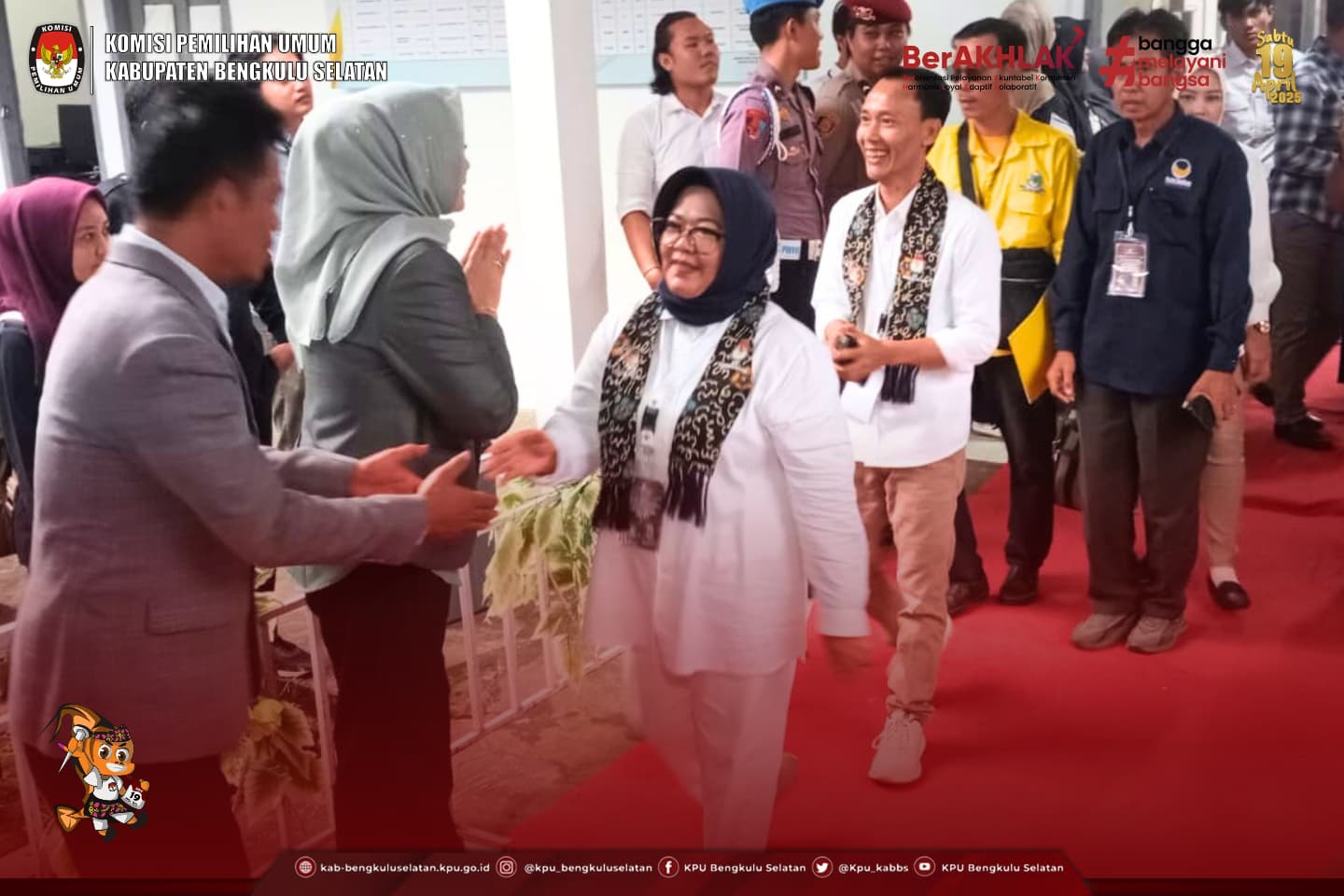#TemanPemilih,Ketua KPU Kabupaten Bengkulu Selatan Erina Okriani didampingi Anggota KPU Kabupaten Bengkulu Selatan Aspriantoni,Gusman Heriyadi, Mafahir dan Wiwin Hendri menerima dokumen persyaratan Bakal Calon Pengganti Bupati dan Wakil Bupati Bengkulu Selatan Tahun 2024 Pasca Putusan Mahkamah Konstitusi Suryatati & II Sumirat ,S.T.,M.Si di kantor KPU Kabupaten Bengkulu Selatan pada hari Senin (10/03/2025).